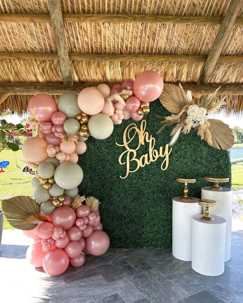 Consider our pretty grasswall complimented by a mega balloon garland